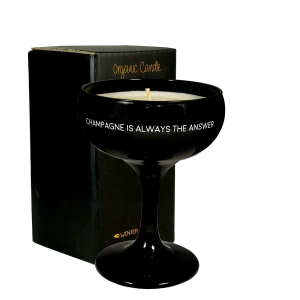 Te leuke geurkaars in een champagne coupe. De kaars is gemaakt van biologische sojawas en heeft de geur Warm Cashmere. Op de rand van het glas staat een toepasselijke tekst; Champagne is always the answer. Een super leuk cadeau voor een verjaardag, als er iets te vieren is, of gewoon zomaar. De kaars brandt ca. 35 uur.